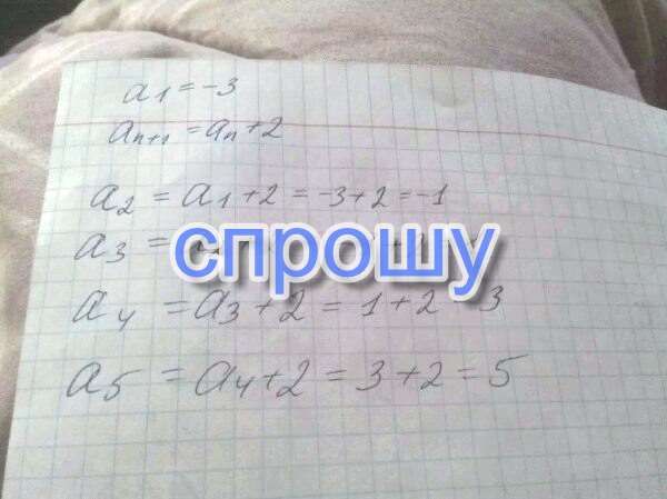 Срочно нужен ответ, помогите пожалуйста.Найти пять первых членов последовательности (аn), если а1 = - 3, аn+1 = аn + 2