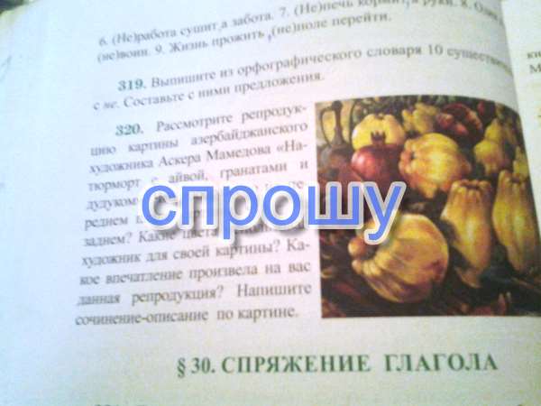 Недавно я увидел чудесную картину А.Мамедова lt;натюрморт с айвойgt;.Мене очень понравилась ее цветовая гамма.На переднем плане картины изображенна айва,налитая ярким желтым цветом, и национальный армянский инструмент дудук,лежащий на нотах,музыка которого чудесна и сочные красные гранаты,лежащие в айве.На заднем плане картины изображена свисающая веточка оливы и старинная керосиновая лампа
