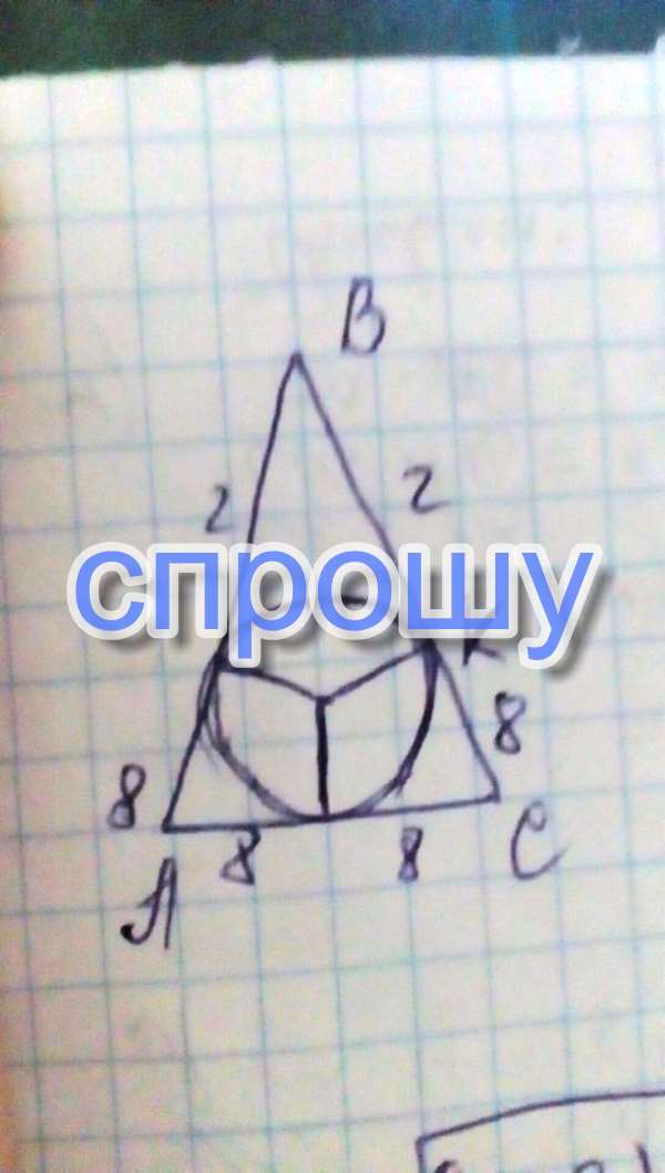В равнобедренном треугольнике ABC с основанием AC вписана окружность. Она касается стороны BC в точке K. Найдите радиус окружности, если BK = 2, CK = 8.