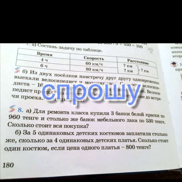 1).В пути был автобус со скоростью 60 км/ч и автомобиль со скоростью 80 км/ч. Сколько всего км они проедут вместе, если автобус был в пути 4 часа, а автомобиль 6 часов