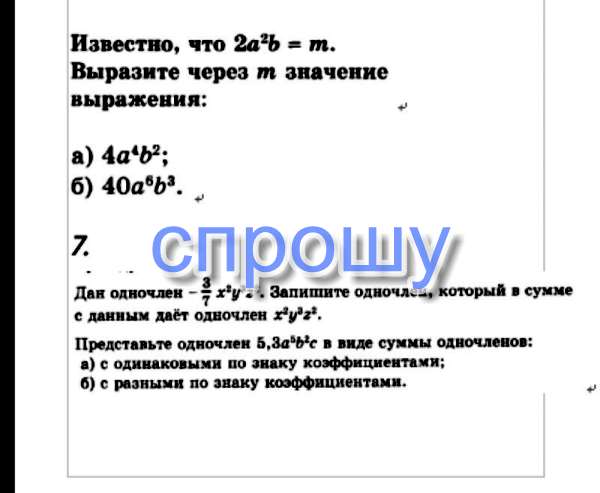 б) 40a^6 × b³ = 2a²b × 20a⁴b² , где 2а²b = m =gt; 40a^6 × b³ = 20a⁴b²m