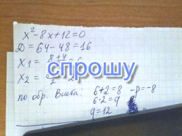 Х²-8х+12 = 0 по обратной виета помогите !
