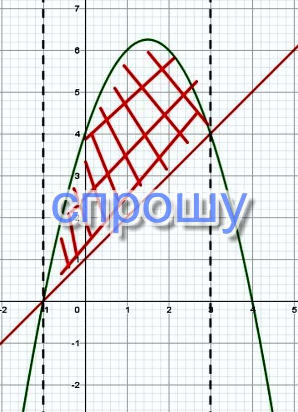 Вычислите площадь фигуры ограниченной линиями: y = - x^2 + 3х+4 и y = х + 1