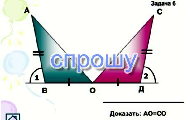 3) заключаем, что ∆ АВО=∆ СДО ( по 1 признаку, т.е. по двум сторонам и углу между ними)