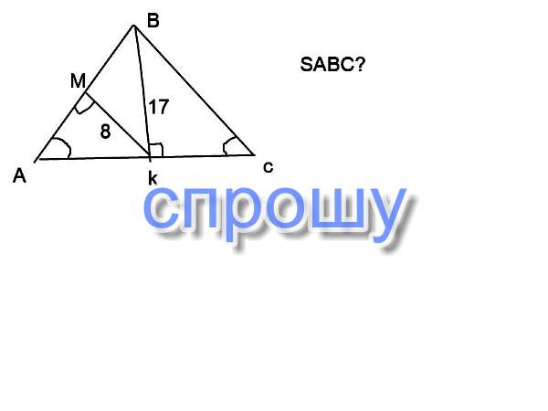 В равнобедренном треугольнике abc с вершиной b медиана bk равна 17. Высота km треугольника bka равна 8. Найдите площадь треугольника abc.