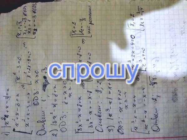 Решить уравнения Пожалуйста помогите. 1)|x^2+x-3| = x 2)|3x^2-x| = 8+x 3)|x^3-x| = x+4