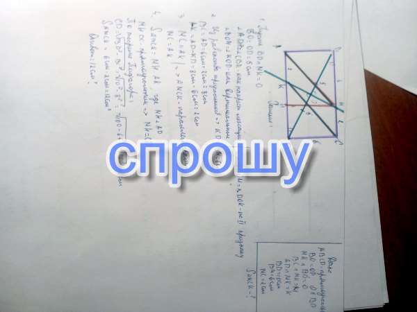 Через середину диагонали BD прямоугольника ABCD проведена прямая, которая пересекает сторону BC и AD прямоугольника в точках M( сторону BC) и K (сторону AD). BD = 10 см, BM = 6 см, MC = 2 см. Найти площадь AMCK