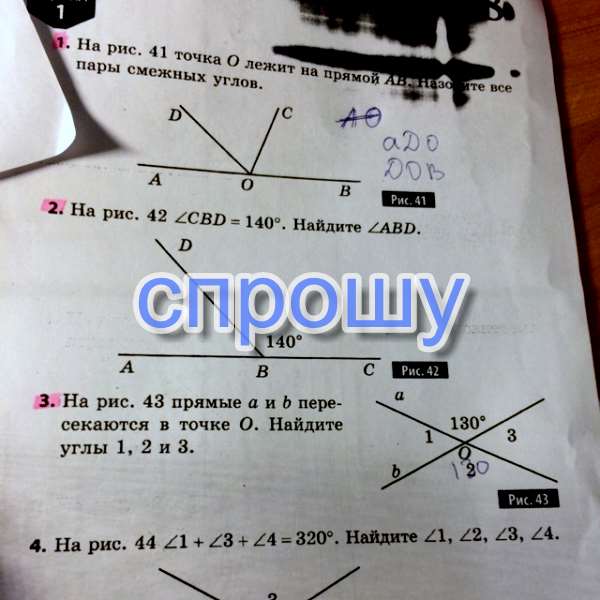 На рисунке прямые a и b пересекаются в точке O. Найдите углы 1,2,3