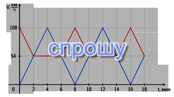 Две машины – красная и синяя – одновременно начали движение в одном направлении вдоль одной прямой. Графики зависимостей скоростей машин от времени приведены на одном рисунке.