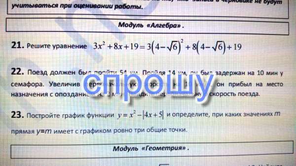 21. т.к. коэффициенты у обоих сторон равны и скобка в правой части одна и та же, то данное равенство может быть выполнено только есть х равен содержимому скобки, т.е. х=4-корень из 6
