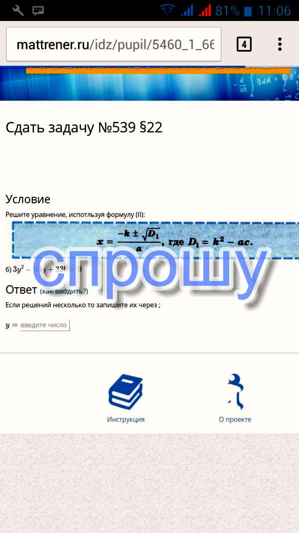 Решите уравнение, используя формулу