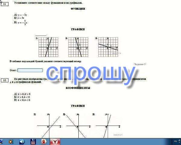 установите соответствие между коэффицентами k и b к графикам функции