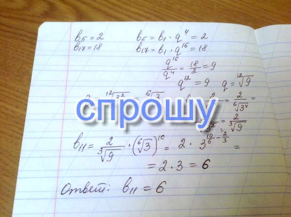 В геометрической прогрессии В5 = 2, В17 = 18. найти В11.