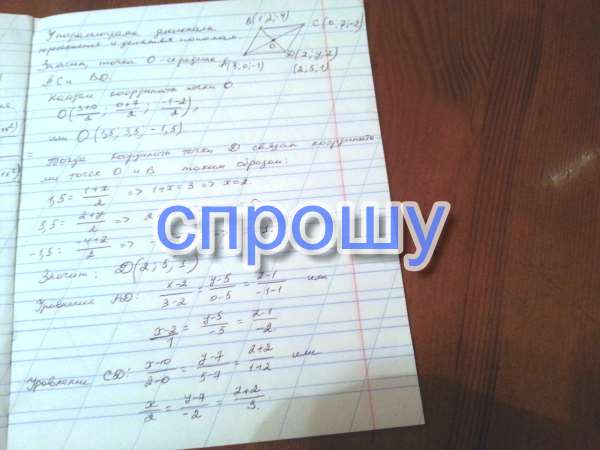 Даны 3 последовательные вершины параллелограмма A(3,0,-1), B(1,2,-4), C(0,7,-2) . Найти уравнения линий Ad и CD