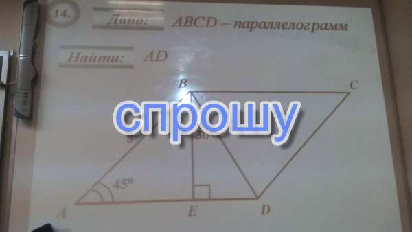 Рассмотрите равнобедренный треугольник с гипотенузой 8. Найдите ВЕ = АЕ = 4 корня из 2. В треуг. с углом 30 град. найдите AЕ. Сложите отрезки и найдете AD.