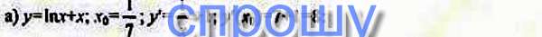 Так у вас там и так решено подробно. Сначала находите производную от функции. Производная натурального логарифма 1/х, производная х это 1. И теперь в полученное выражение подставляете 1/7. 1 разделить на 1/7 это 7 и плюс еще 1 равняется 8
