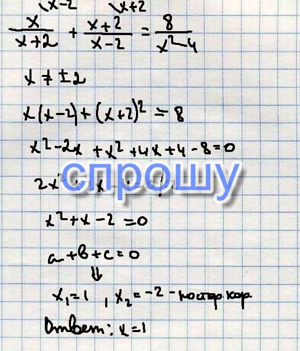 Х\х+2 + х+2\х-2 = 8\х2 - 4