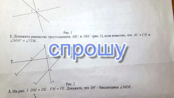 Докажите равенство треугольника АВС и DEC, если известно, что АС = СD и |_ MAF = |_TDK ("|_" это угол)