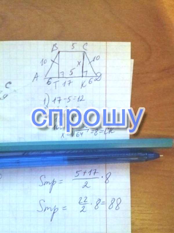 Основания равнобедренной трапеции равны 5 и 17, а ее боковые стороны равны 10. Найдите площадь трапеции. Помогите решить задачу