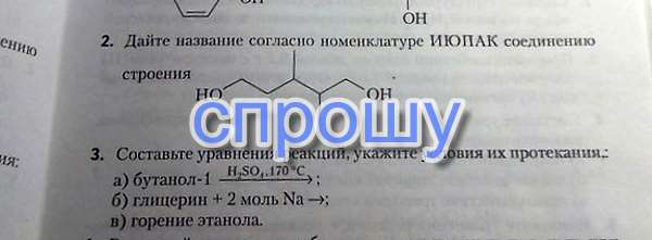 2. пентадиол-1,5 3а CH3CH2CH2CH2OH= CH3CH2CH=CH2+H2O. 3b CH3OHCH2OHCH3OH+2Nagt; CH3ONaCH2ONaCH3OH +H2. 3в. C2H5OH +3O2 =2CO2+ 3H2O