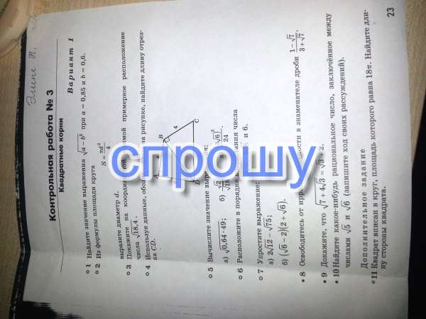 Найдите значение √а-б² при а = 0.85 и б = 0.6