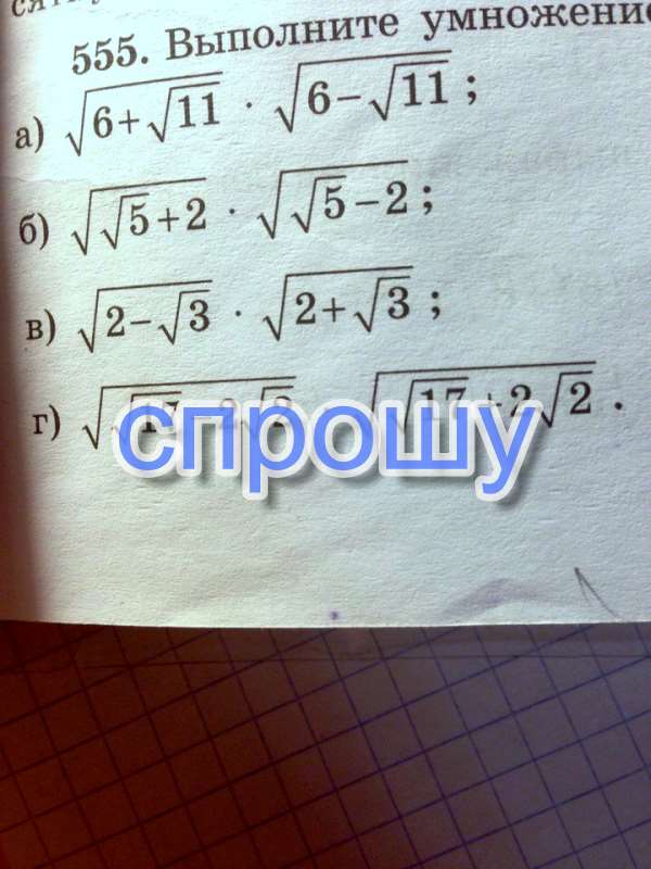 г) √(√17-2√2)*√(√17+2√2)=√(√17-2√2)(√17+2√2)=√(17-8)=√9=3
