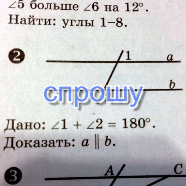 Угол 1+ угол 2 = 180градусов