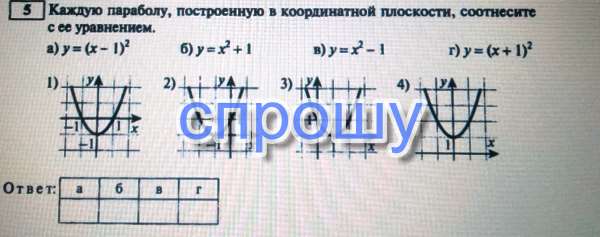 Задание номер 5, помогите соотнести параболу с ее уравнением