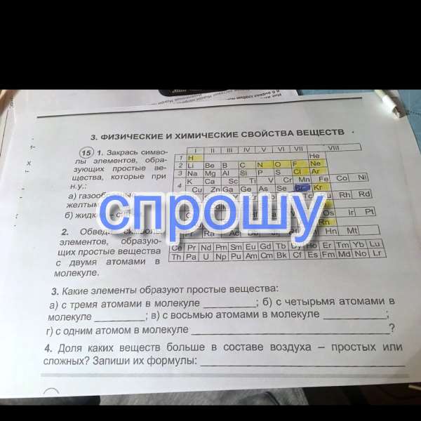 3. кислород (вещ. озон - O3), фосфор (белый фосфор - P4), молекулярная сера (S8) , любой благородный газ (гелий, например).