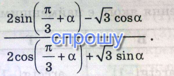 (2sinπ/3cosα+2cosπ/3sinα-√3cosα)/(2cosπ/3cosα-2sinπ/3sinα+√3sinα)=(√3cosα+sinα-√3cosα)/(cosα-√3sinα+√3sinα)=sinα/cosα=tgα