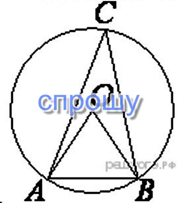 Треугольник ABC вписан в окружность с центром в точке O. Найдите градусную меру угла C треугольника ABC, если угол AOB равен 21°.