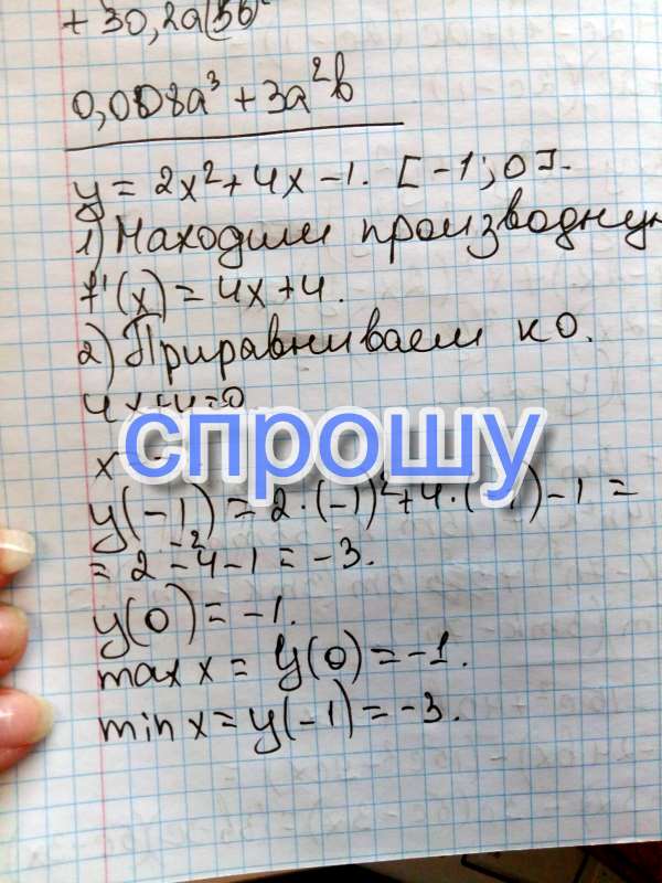 Найдите наименьшее и наибольшее значение функции y = 2x^2+4x-1 на отрезке [-1;0]
