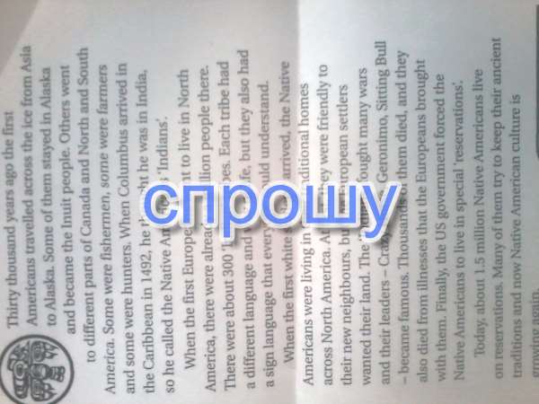 Тысячу лет тридцать тысяч лет назад первые американцы путешествовали по льду от Азии до Аляски. Некоторые из них остались на Аляске и стал народ инуитов, другие пошли в разные части Канады и Северной и Южной Америке. Некоторые из них были nshermen, некоторые и некоторые из них были охотники. Когда Колумб прибыл в Карибском бассейне в 1492 году, он думал, что он был в Индии, так он назвал коренных американцев индейцев Когда первые европейцы пошли жить в Северной Америке, там уже миллион человек там. Существовали около 300 индийских племен. У каждого племени был другой язык и способ oflife, но они также имели язык жестов, чтобы каждый мог понять. Когда прибыли первые белые поселенцы ", коренные американцы жили в своих традиционных домах по всей Северной Америке. Во-первых, они были дружественными к своим новым соседям, но европейские поселенцы хотели, чтобы их землю. воевавшие много войн индейцев и их лидеры Crazy Horse Джеронимо, Сидящий Бык стал известным. Тысячи из них умерли, и они также умерли от болезней, которые европейцы принесли с собой. И, наконец, правительство США вынудило коренных американцев жить в специальных оговорок. На сегодняшний день около 1,5 млн коренных американцев живут в резервациях. Многие из них пытаются сохранить свои древние традиции и теперь Индеец cuiture является.......КАК ТО ТАК