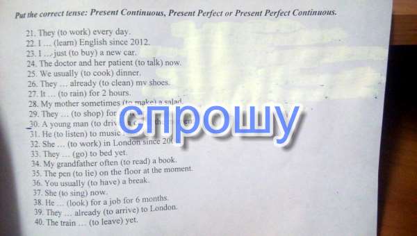 B 21, 25, 28, 34, 36 предложениях не могут быть употреблены времена, указанные в задании, там явно present simple нужен