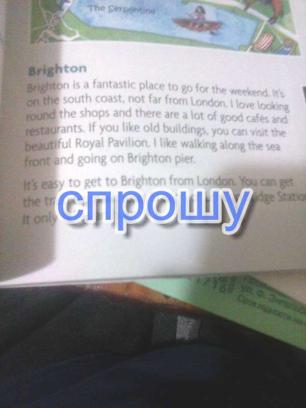 Брайтон - фантастическое место для проведения выходных. Он расположен не так далеко от Лондона - на южном побережье. Я люблю осматривать здесь магазины, и так же здесь немало хороших кафе и ресторанов. Если вам нравятся старые здания, вы можете посетить Королевский Павильон. Мне нравится прогуливаться вдоль морской набережной и ходить по Брайтонской пристани.