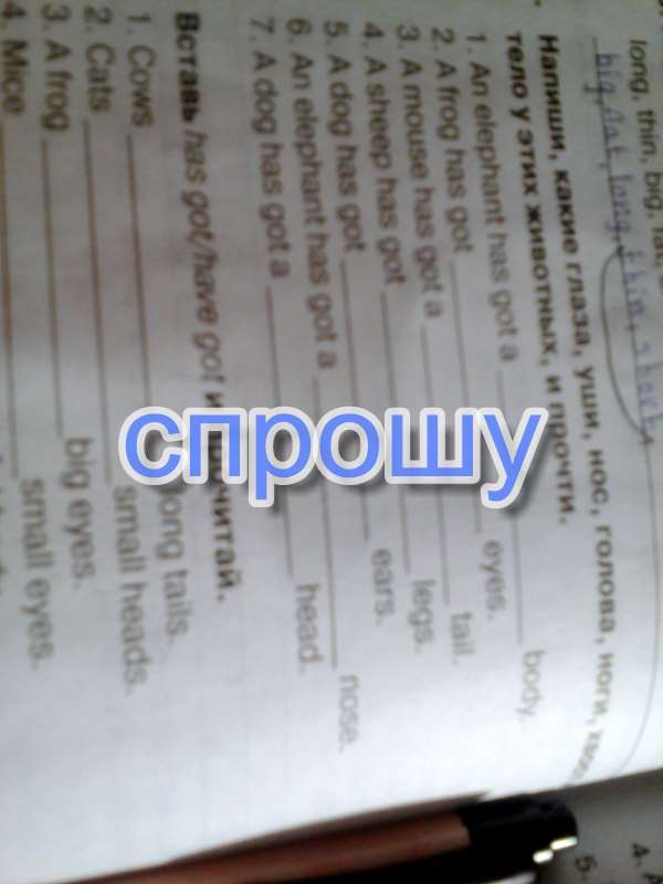 Напиши какие глаза уши нос голова ноги хвост и тело у этих животных и Прочти