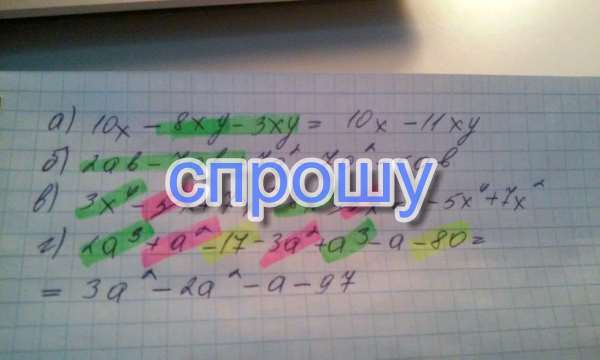 а) 10х-8ху-3ху;