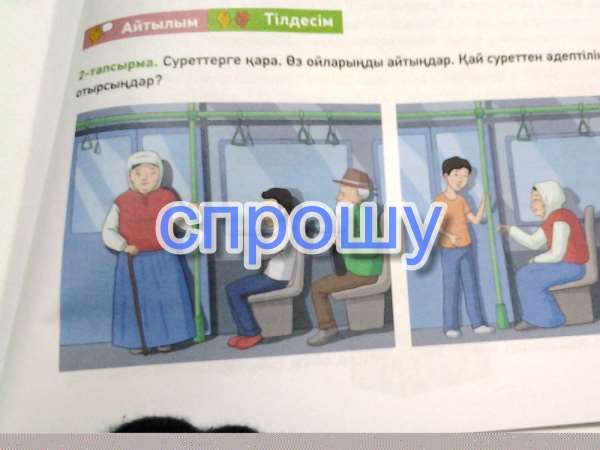 2 суреттегі ұл бала əжеге орын беріп сыпайылық танытып жатыр.