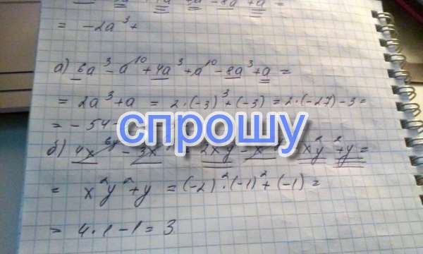 Найдите значение многочлена: а) 6а³-а^10+4а³+а^10-8а³+а; при а = -3.