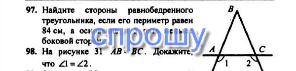 Треугольник ABC равнобедренный =gt; углы при основании равны. Т.е. угол А = углу В. Угол 1 смежный с углом А, а угол 2 смежный с углом =gt; угол 1 = углу 2. Понятно