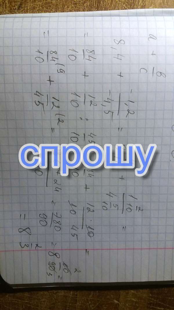 Найдите значение выражения а+b/с при а = 8,4; b = –1,2; с = – 4,5