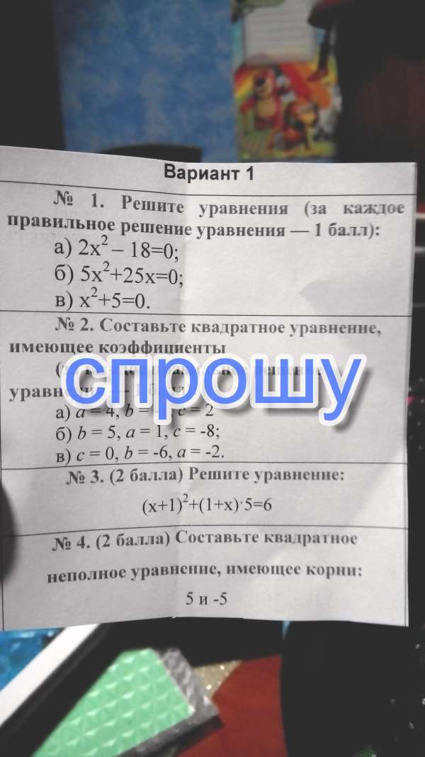 2. общий вид квадратного уравнения: