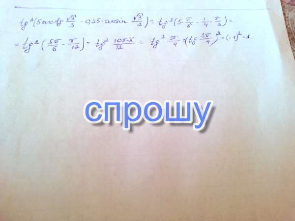 Tg2(5 arctgкорень 3/3-0,25 arcsinкорень 3/2
