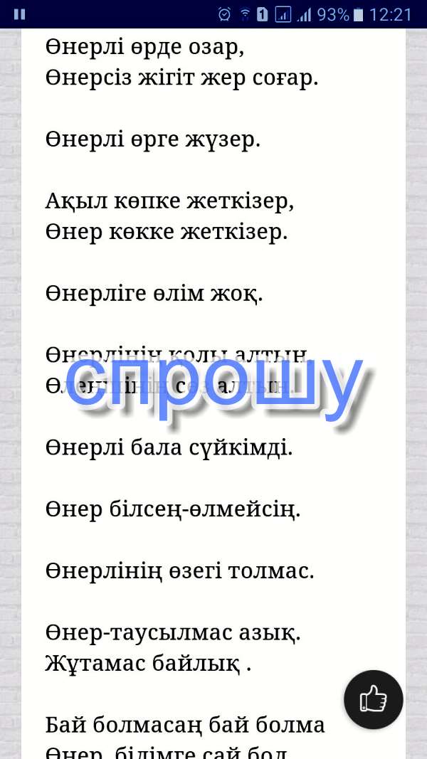 Нужно найти 10 пословиц на казахском языке на тему Өнер