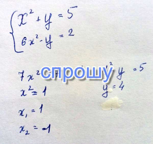 Решите систему уравнений x в квадрате+y = 5 6x в квадрате -y = 2