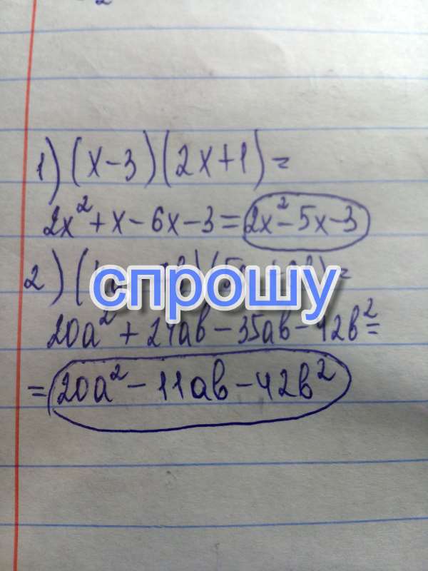 Представьте в виде многочлена стандартного вида выражение: 1) (x-3)(2x+1)