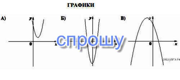 На рисунке изображены графики функций вида y = ax^2 + bx + c. Установите соответствие между графиками функций и знаками коэффициентов a и c!!