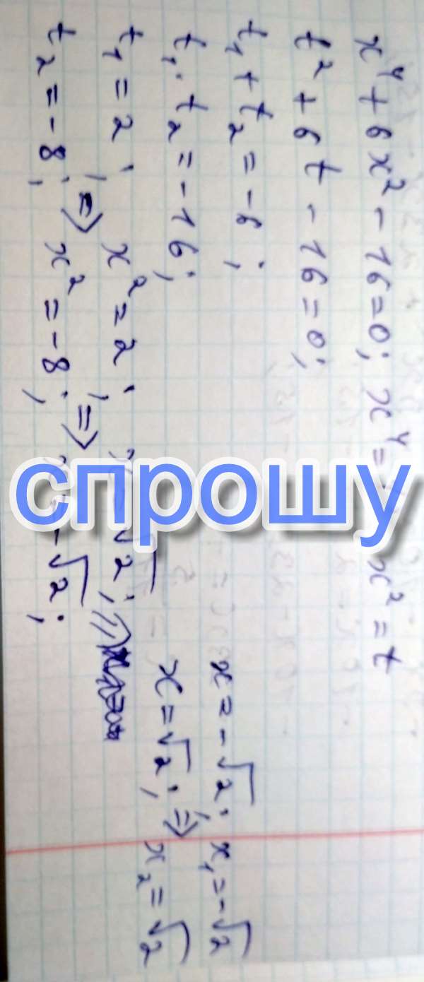 X⁴+6x²-16 = 0 решите уравнения пожалуйста помогите