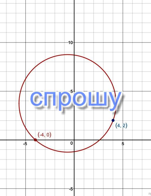 Напишите уравнение окружности, радиус которой равен 5, проходящей через точки А(-4;0) и В (4;2). С полным решением.
