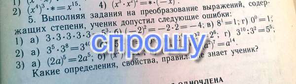 Выполняя задания на преобразование выражений , содержащих степени , ученик допустил слудующие ошибки: